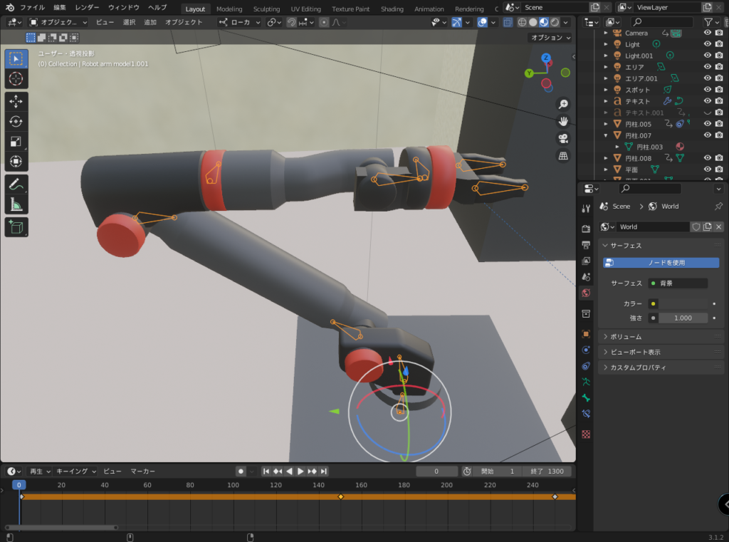 ロボットアームをモデリングして、アニメーションで動かしました。
